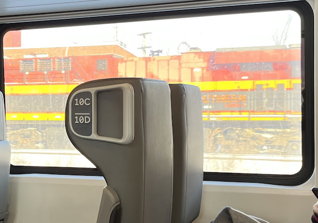 There's also a very bright light on the platform in the middle of the image. That is a cart being used by Via crews who are servicing these trains. I also like how the station is lit up like a lantern at night. The Ottawa station is a decidedly modern-looking depot, but some of its style choices make it an appealing place to wait for your train. It has won architectural awards in the past. Normally, I prefer the classic train stations, but this train station is right up there with my favourites. I've always liked it.