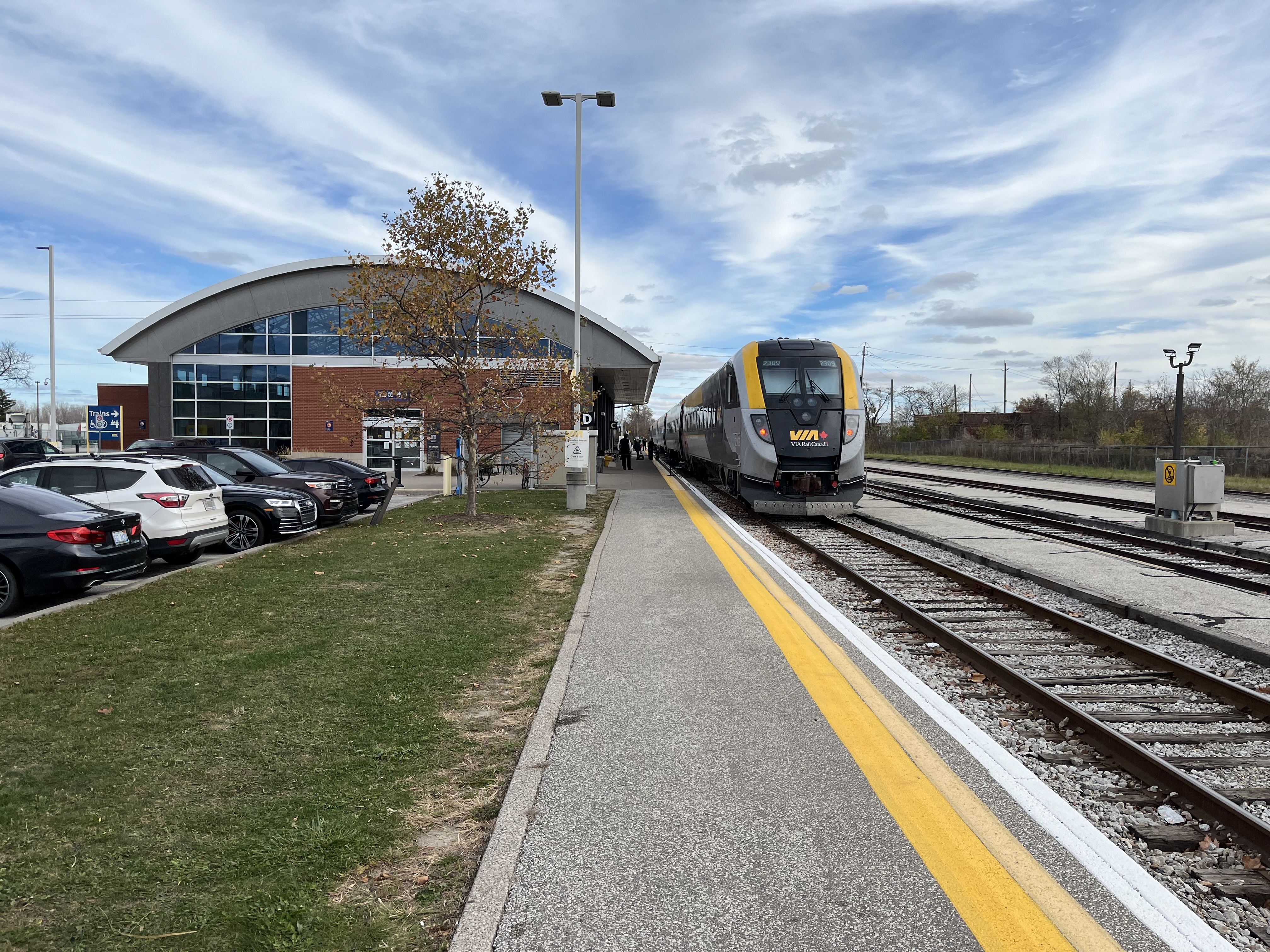 Here's a shot from my brief time in Windsor in November, when I was lucky enough to catch a Venture set about to depart the city's Via terminal in the Walkerville part of the city. More on Windsor to come.